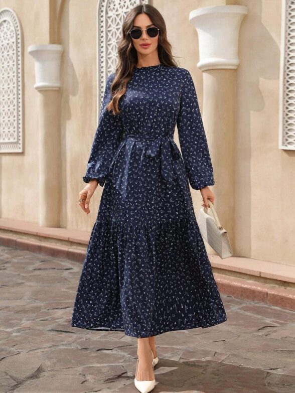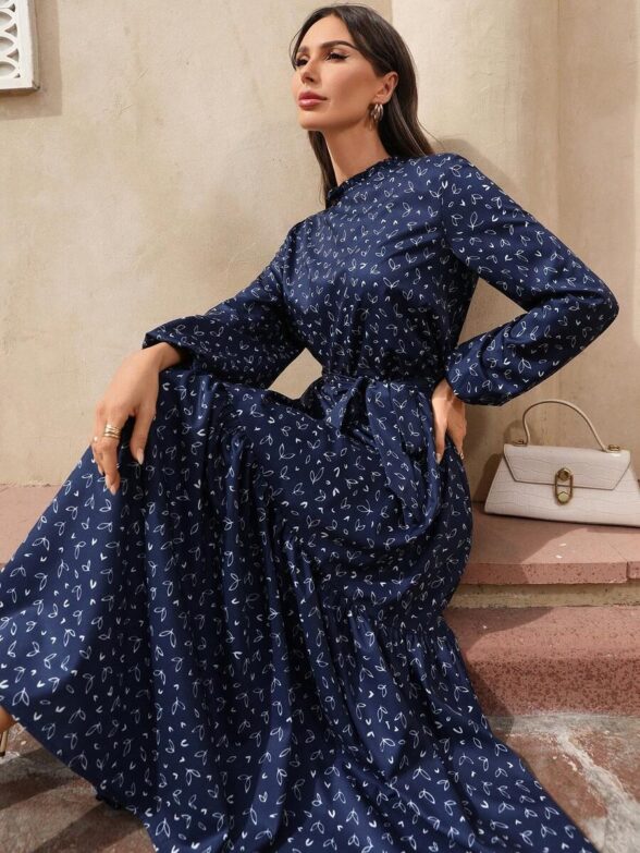 Rochie Lunga Cambria Bleumarin cu Print Alb