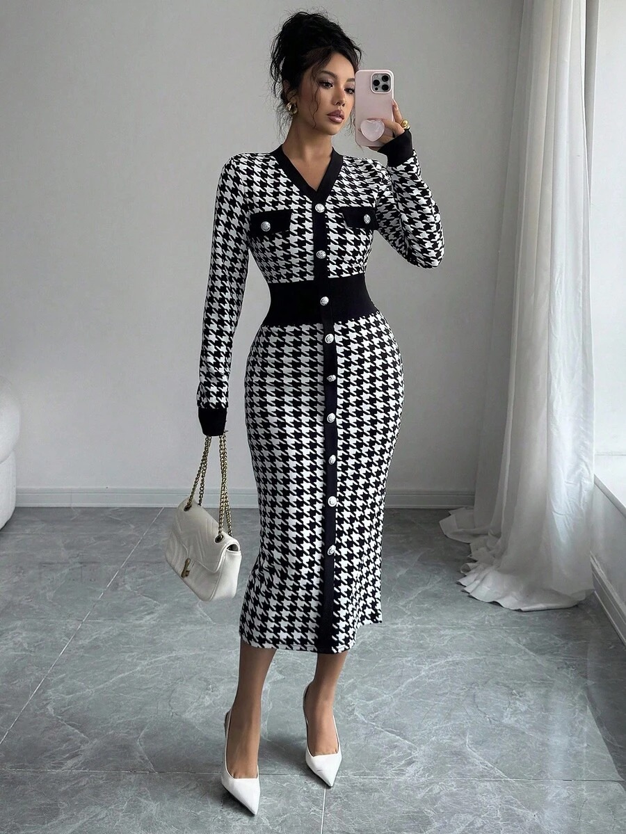 Rochie Midi Drucilla Alba cu Print Geometric Negru