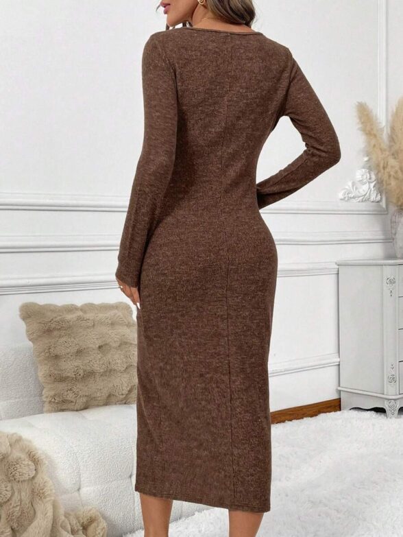 Rochie Midi Tricotata Syria in 2 culori Portocaliu cu Maro