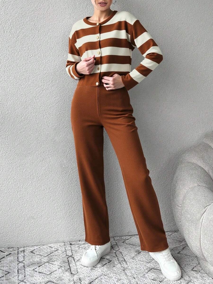 Compleu Tricotat cu Pantalon Emilin Maro cu Dungi Albe