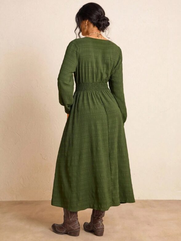 Rochie Midi Aletha Verde cu Print Alb si Negru – Marimi Mari