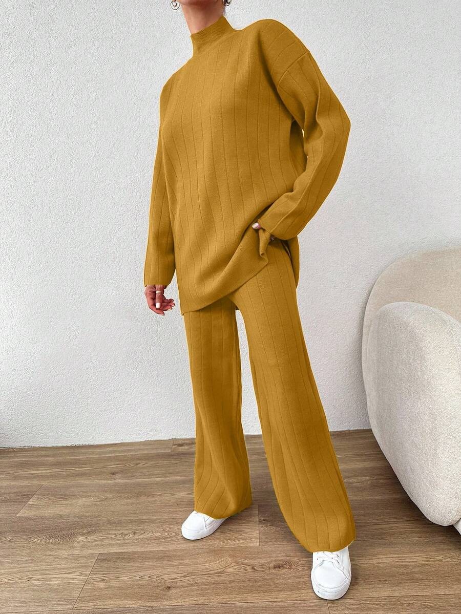 Compleu Tricotat cu Pantalon Irina Galben Mustar