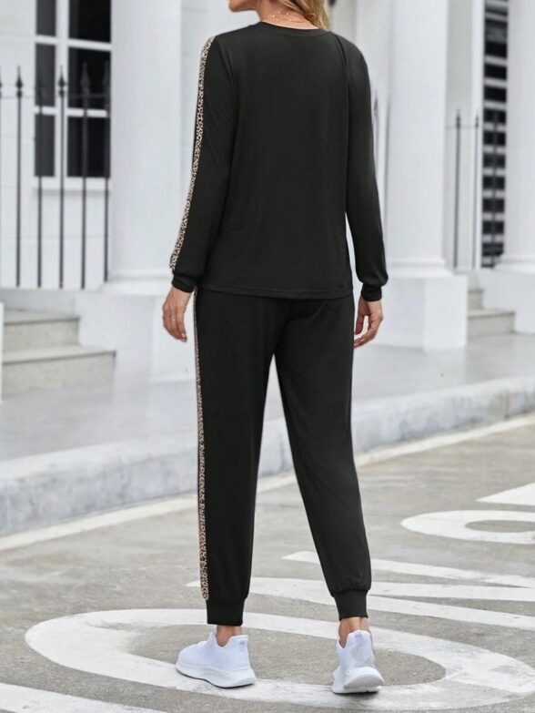 Compleu Pearly Verde cu Print Negru format din Top si Pantalon