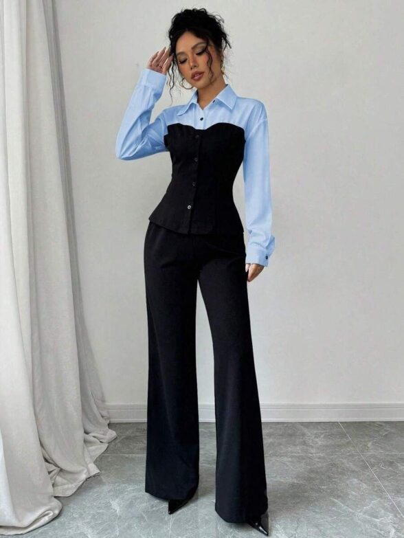 Prețul inițial a fost: 435,00 lei.174,00 leiPrețul curent este: 174,00 lei.Compleu cu Pantalon Lussa Negru