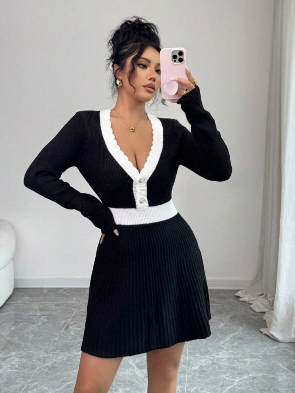 Rochie Scurta Tricotata Noella Neagra