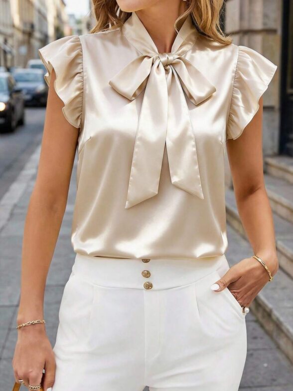 Compleu Nevena Bej format din Camasa si Pantalon