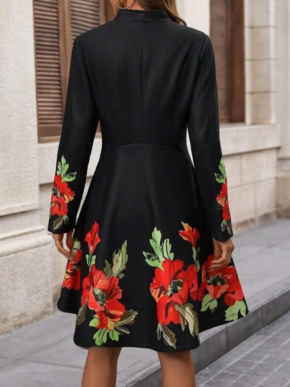 Palton Scurt Sofia Negru cu Print Floral Rosu ( fara captuseala )