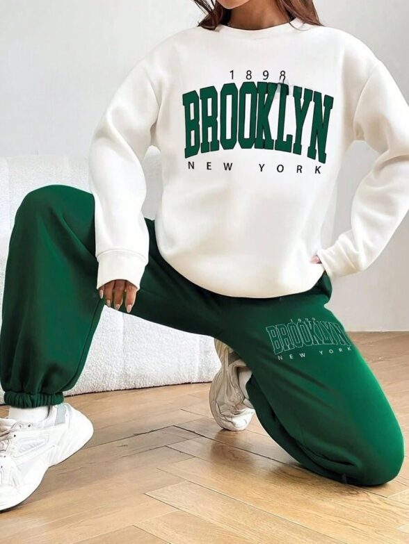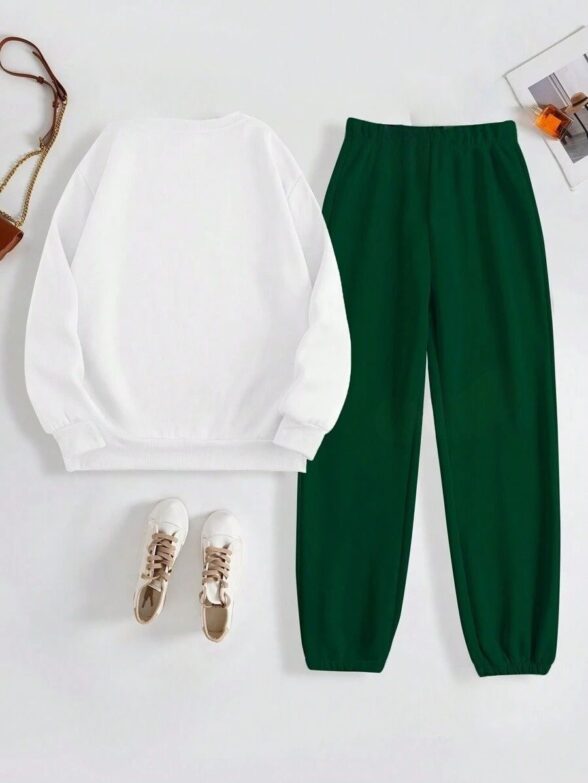 Trening Mitzel Format Din Pantalon Verde Si Bluza Alba Cu Scris