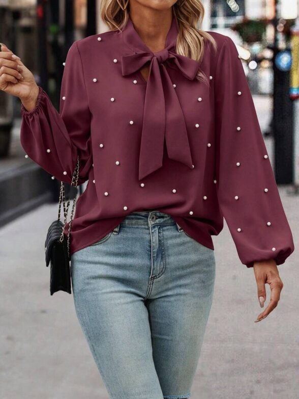 Camasa Dama Debbie Grena cu Funda si Perle