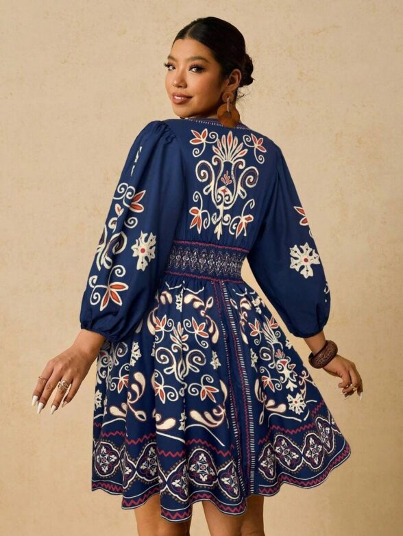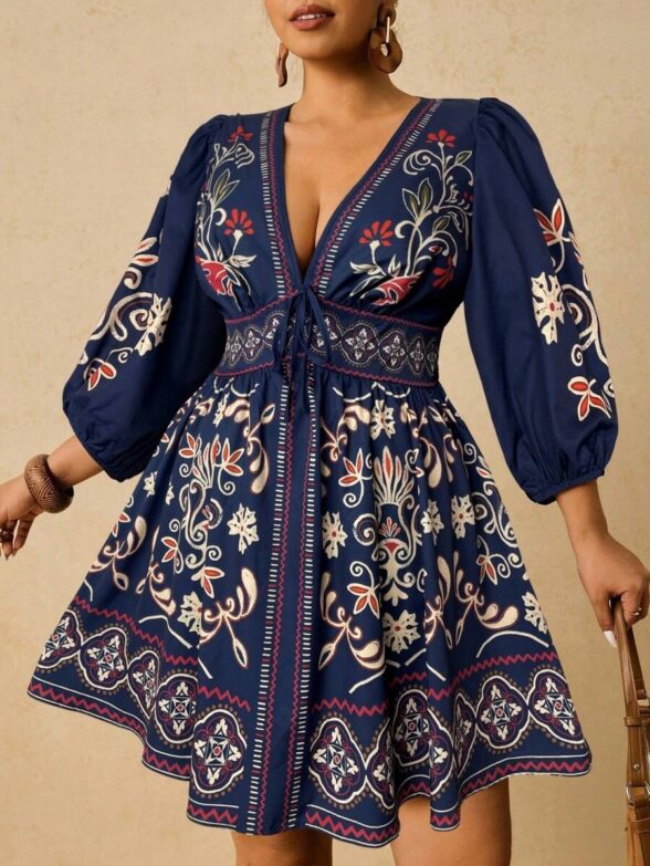 Rochie Scurta Pissa Bleumarin cu Print Alb – Marimi Mari