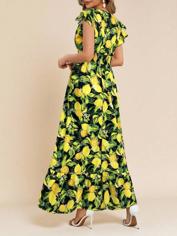 Rochie Lunga Carla Neagra cu Print cu Lamai