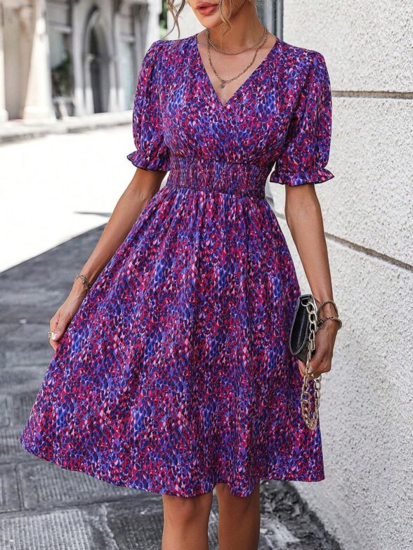 Rochie Scurta Soraya Verde cu Print Floral Alb
