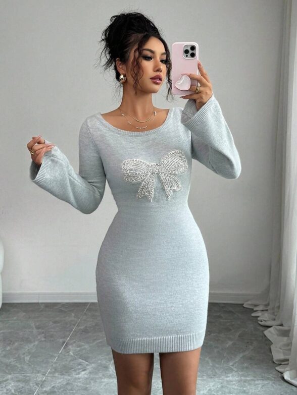 Rochie Scurta Tricotata Lilly Gri