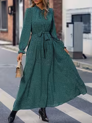 Rochie Lunga Nansy Verde cu Buline Albe