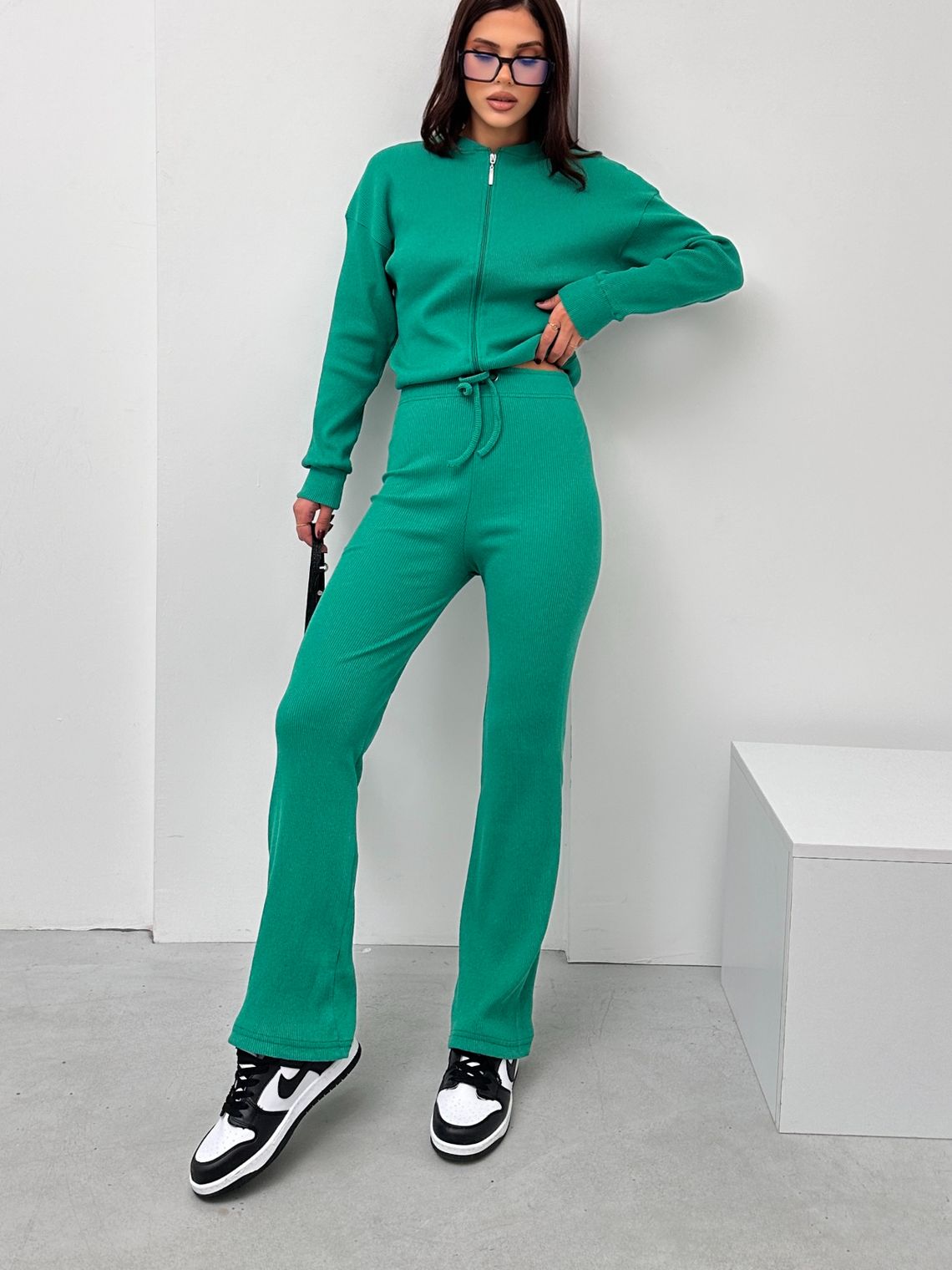 Compleu cu Pantalon Riana Verde din Bumbac