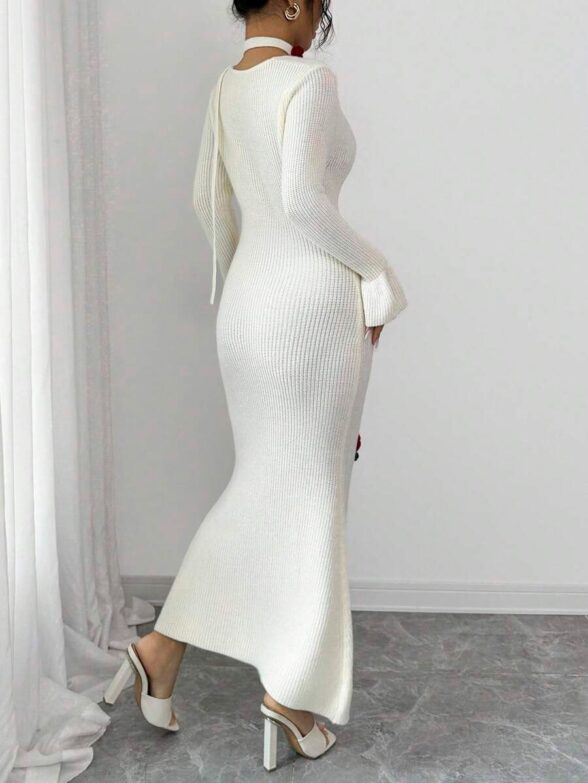 Rochie Lunga Corra Alba cu Print Floral Rosu
