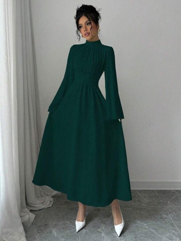 Rochie Lunga Melka Bleu Cu Maneci Bufante