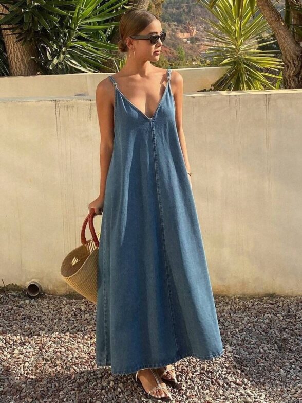 Rochie Lunga Atuna Albastra Cu Pliuri