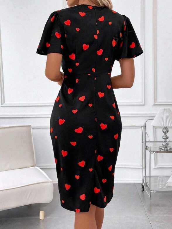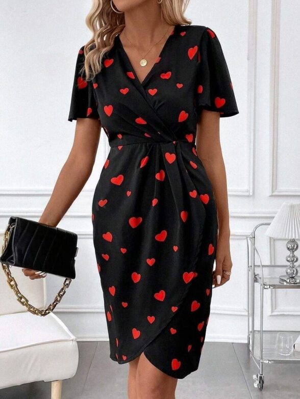 Rochie Scurta Melda Neagra cu Inimioare Rosii
