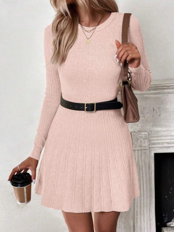 Rochie Scurta Tricotata Stanca Roz