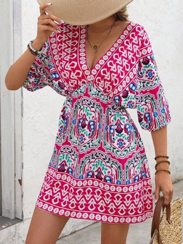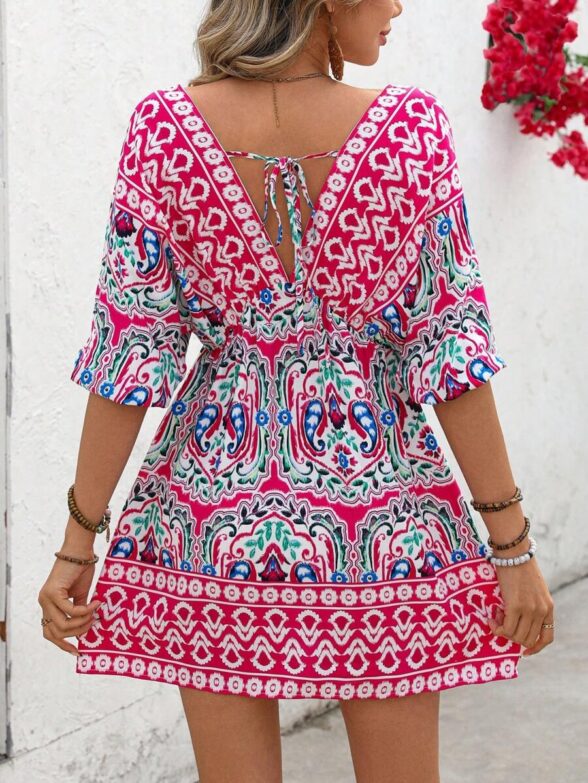 Rochie Scurta Eline Grena cu Print Floral