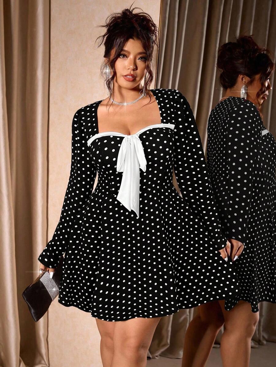 Rochie Scurta Ruana Neagra cu Buline Albe - Marimi Mari