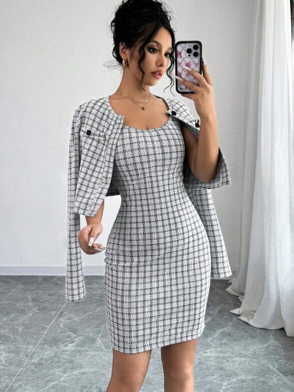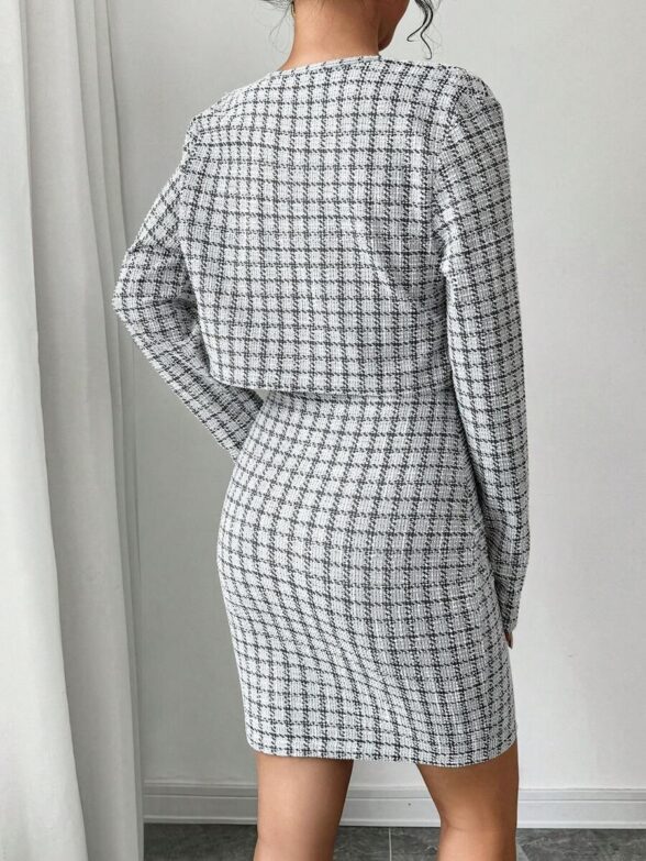 Compleu cu Rochie Scurta Petria Alb cu Negru