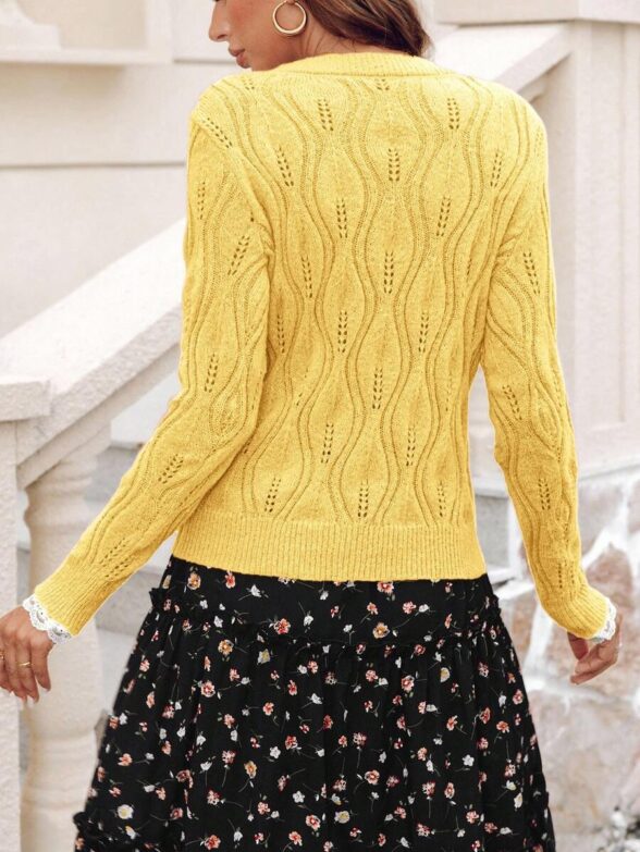 Pulover Tricotat Silvia Galben cu Perle