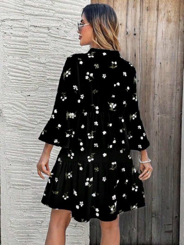 Rochie Scurta Tarsa Neagra cu Print Floral Alb