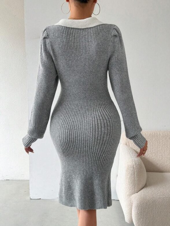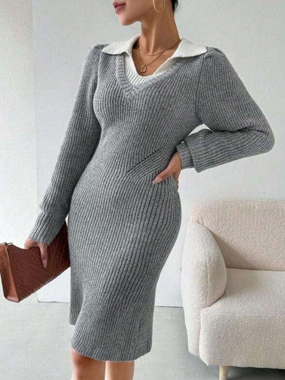 Rochie Scurta Tricotata Adina Gri cu Alb
