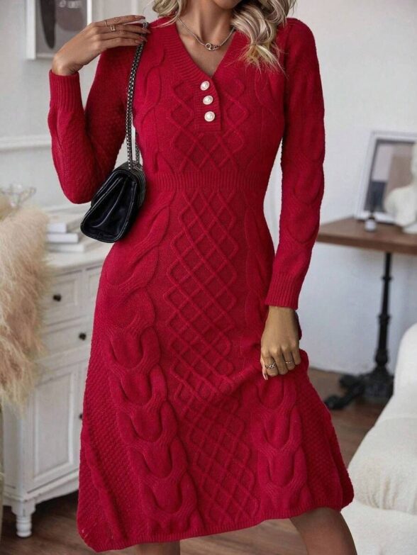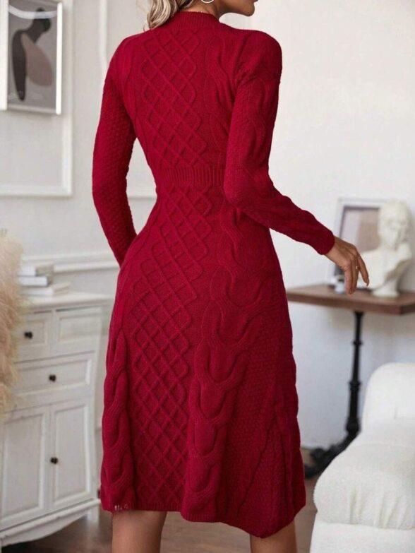 Rochie Scurta Tricotata Ingalis Grena cu Model in Relief