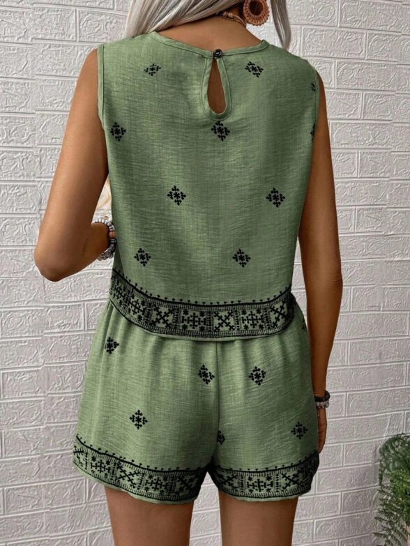 Compleu Veny Kaki cu Print Negru format din Top si Pantalon Scurt