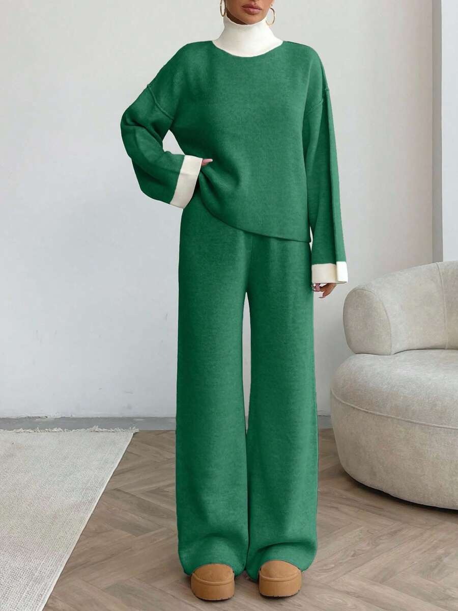 Trening Dama Sandra Bleumarin cu Maneci Albe din Bumbac