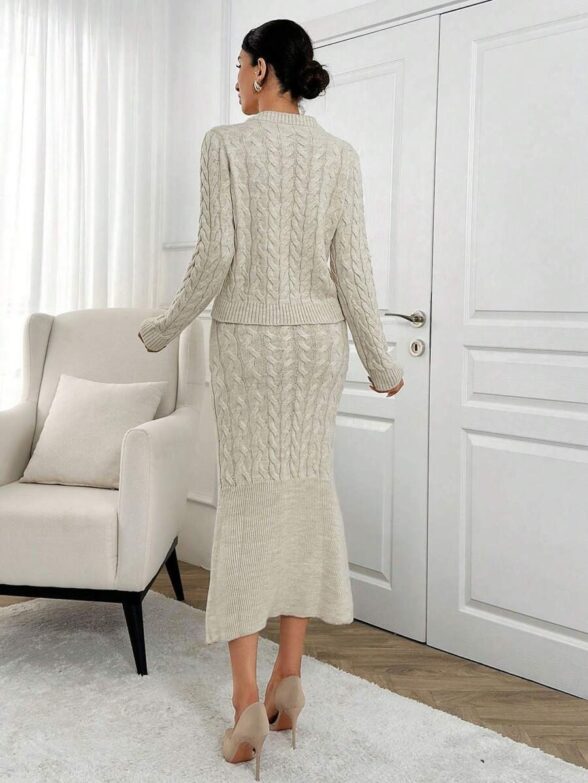 Prețul inițial a fost: 369,00 lei.147,60 leiPrețul curent este: 147,60 lei.Compleu Tricotat cu Fusta Midi Pooja Bej Deschis