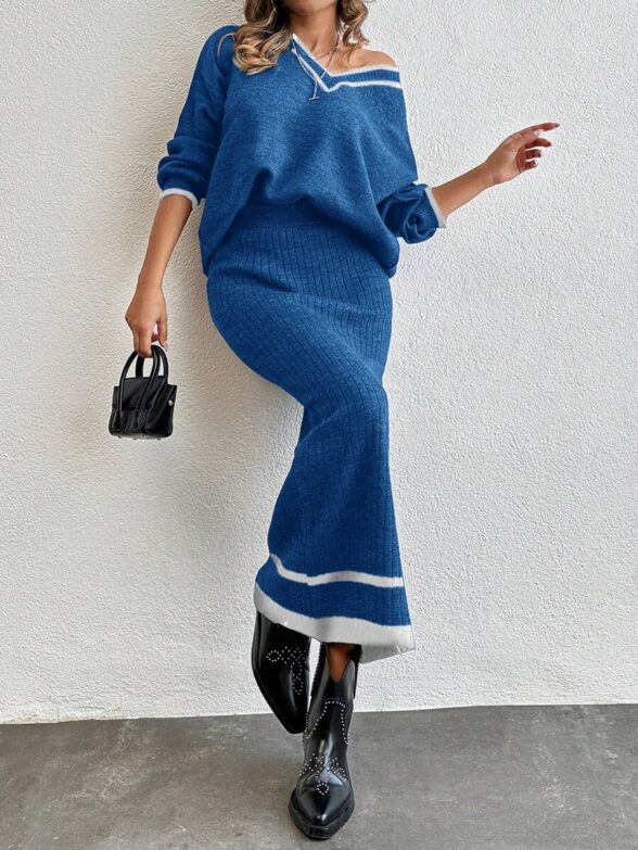 Compleu Tricotat cu Fusta Lunga Nieve Albastru