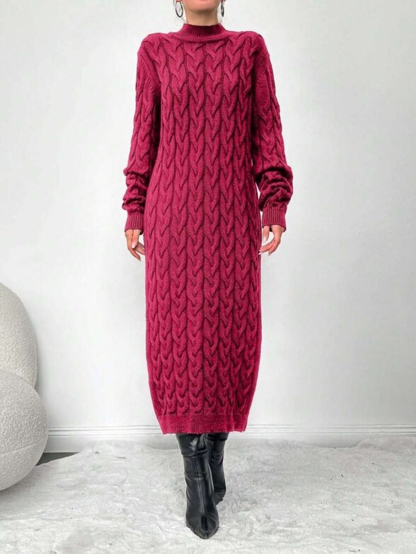 Rochie Scurta Tricotata Ingalis Grena cu Model in Relief