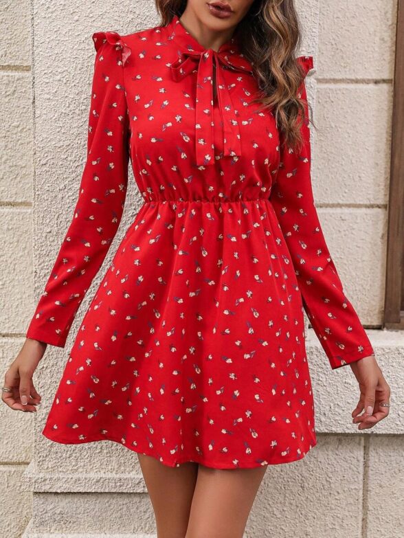Rochie Scurta Jensa Neagra cu Model Rosu