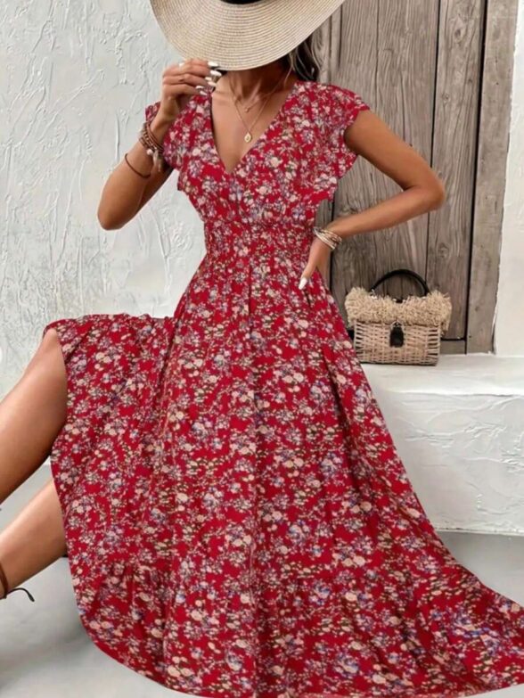 Rochie Midi Mavis Vernil cu Print Floral – Marimi Mari