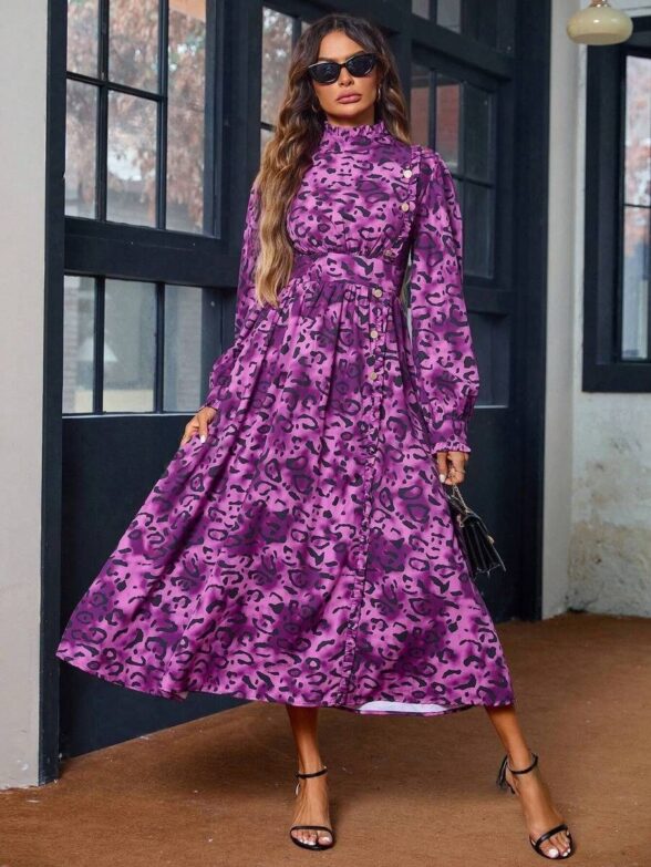 Rochie Lunga Bridge Mov Cu Print Leopard