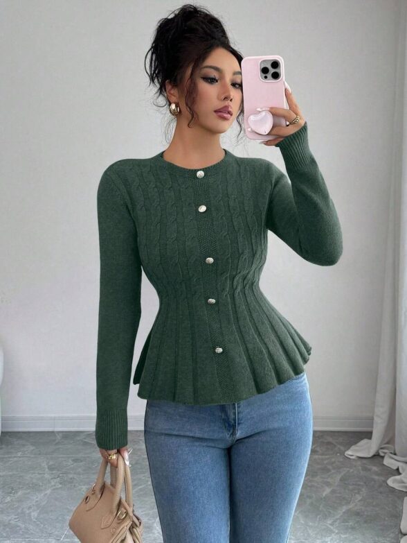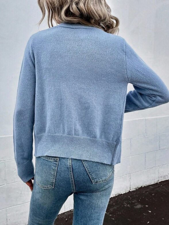 Pulover Tricotat Emira Mov cu Nasturi
