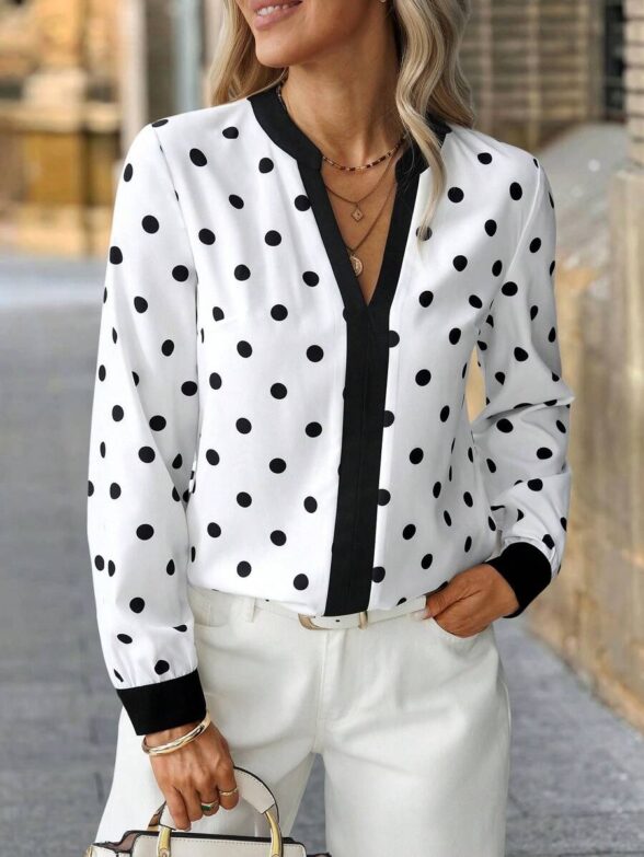 Prețul inițial a fost: 409,00 lei.163,60 leiPrețul curent este: 163,60 lei.Bluza Dama Mirela Alba cu Buline Negre