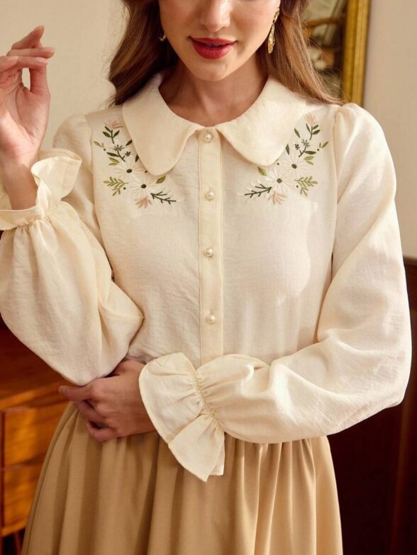 Camasa Dama Edelina Crem cu Broderie
