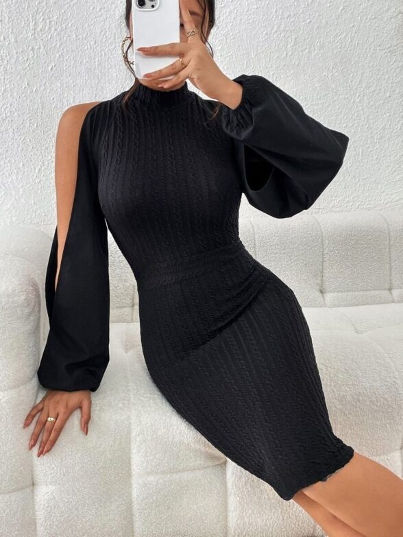 Rochie Scurta Tricotata Ariana Gri Petrol