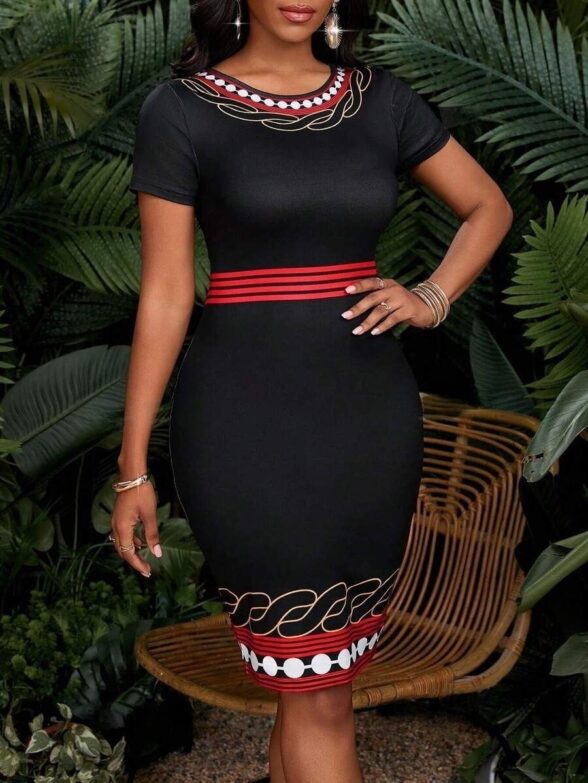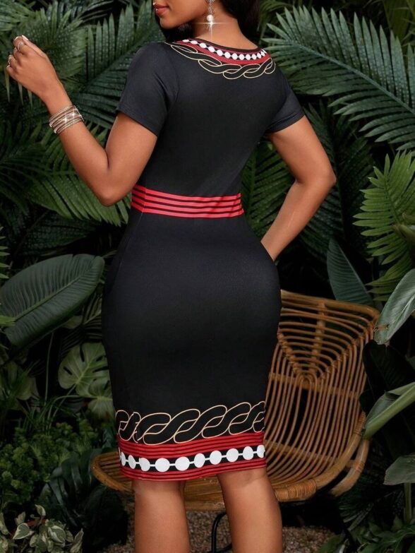 Rochie Scurta Donya Bleumarin cu Print Geometric Maro
