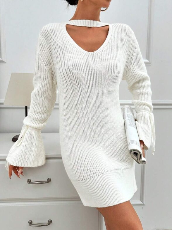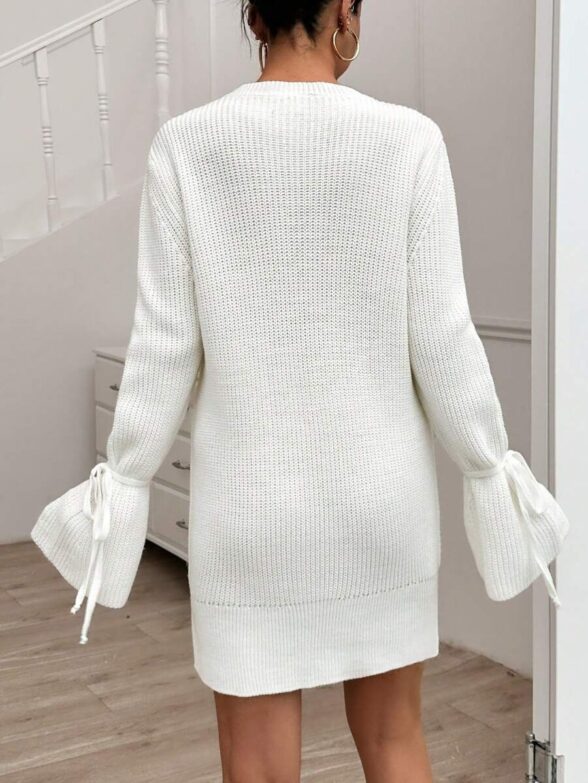 Rochie Scurta Tricotata Marsa Alba Cu Model In Relief