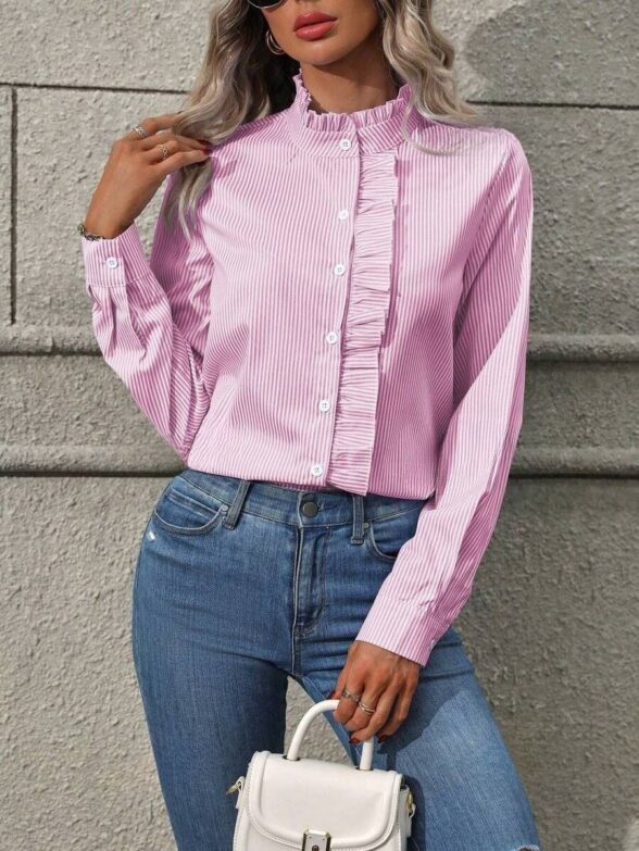 Camasa Dama Evelina cu Dungi Roz si Albe
