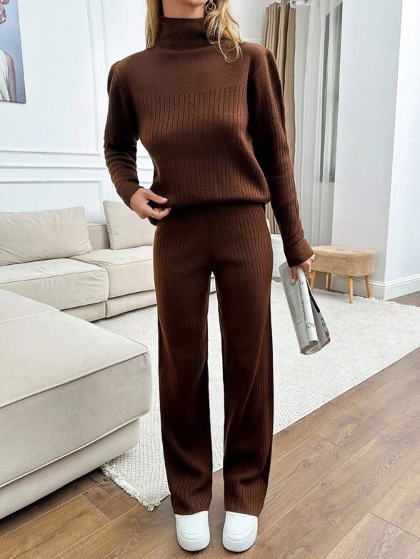 Compleu Tricotat cu Pantalon Cerasa Maro