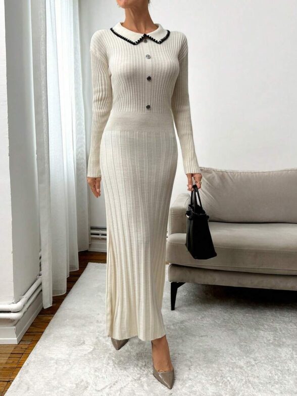 Compleu cu Rochie Scurta Tricotata Ashlyn Bej Inchis