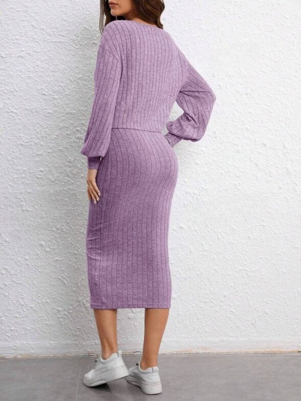 Rochie Scurta Tricotata Tourega Roz Pudra Cu Maneci Bufante