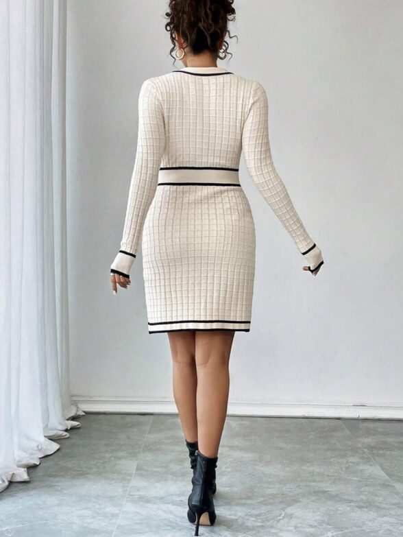 Compleu Tricotat cu Rochie Scurta Atena Crem